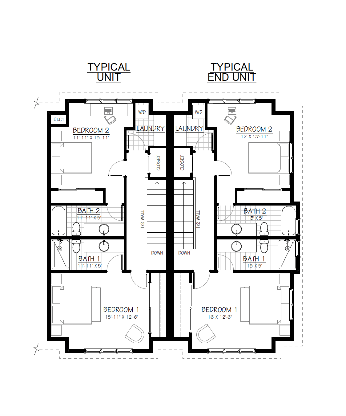 Bldg 5 Upper Floor Typical 747 SF End Unit 762 SF